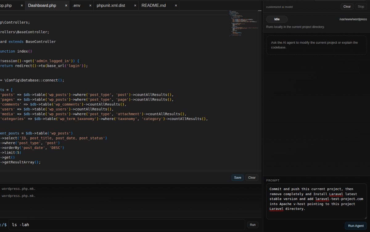 - Real server interaction: Manage files, run scripts, install packages, and interact with your server environment natively.